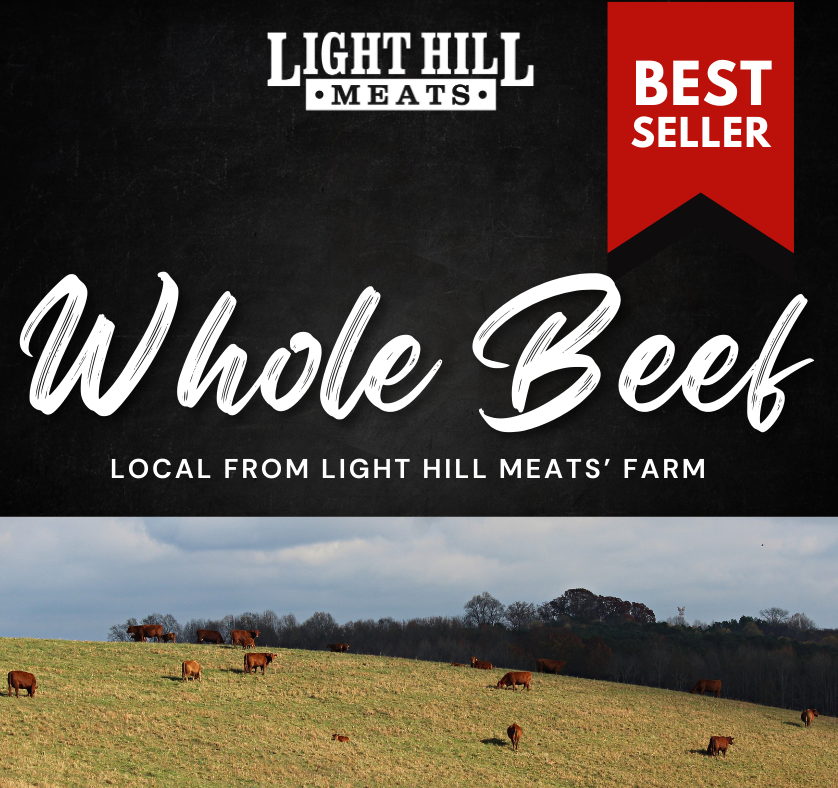 Elevate your meals with our Whole Beef Share, offering you a taste of superior quality, locally raised beef (by Light Hill Meats’ owner in Giles County, Tennessee). Sourced from cattle that are the result of decades of careful breeding and our deep commitment to regenerative and environmentally-focused farming, this isn’t just beef—it’s a reflection of our dedication to quality.
